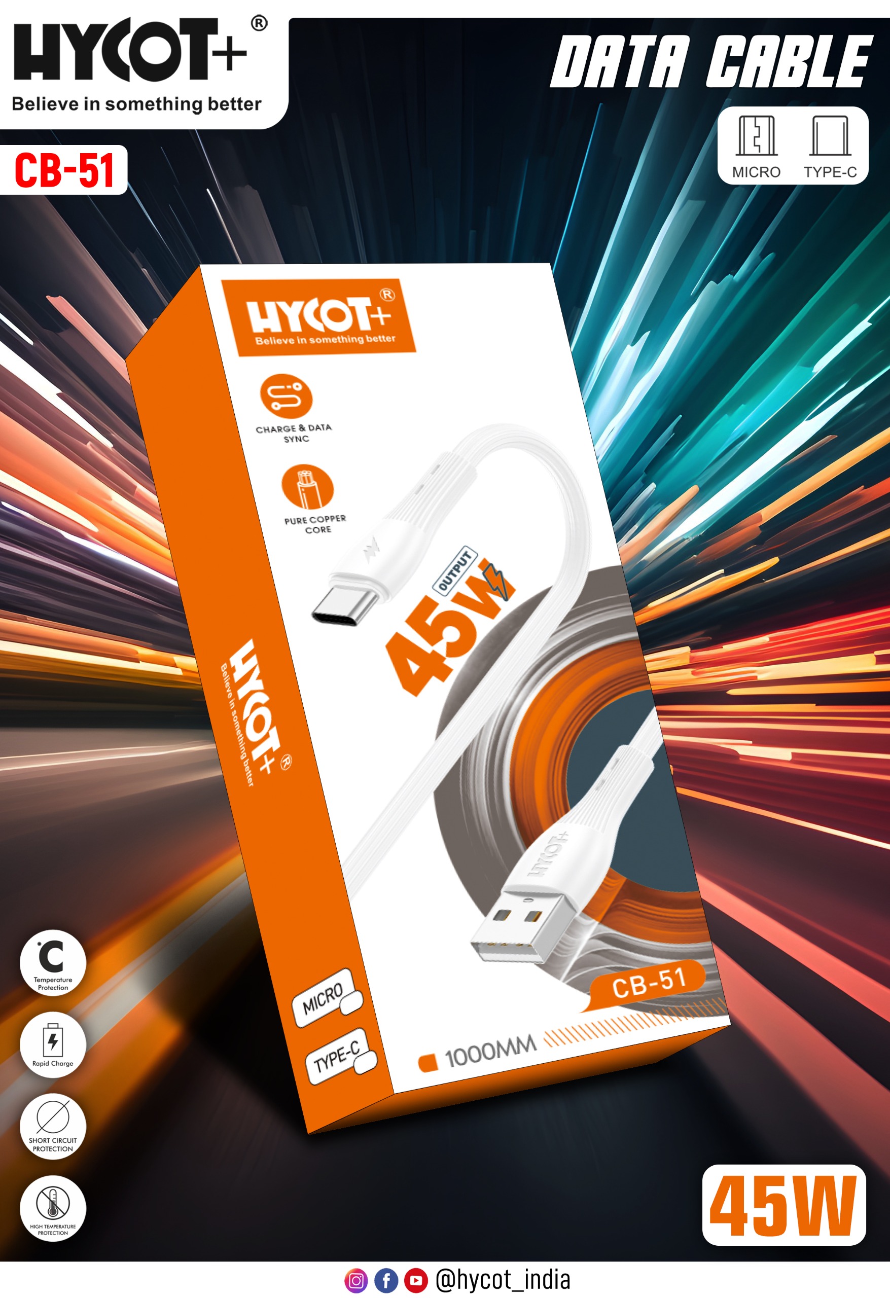 🔸 Model: HYCOT+ CB-62 🔸 Output: 45W Super Vooc Charging 🔸 Variants: Micro Available 🔸 Functions: Fast Charging + Data Transfer 🔸 Build: Strong & Durable Design 🔸 Protection Features: ✔️ Temperature Protection ✔️ Short Circuit Protection ✔️ High Thermal…
