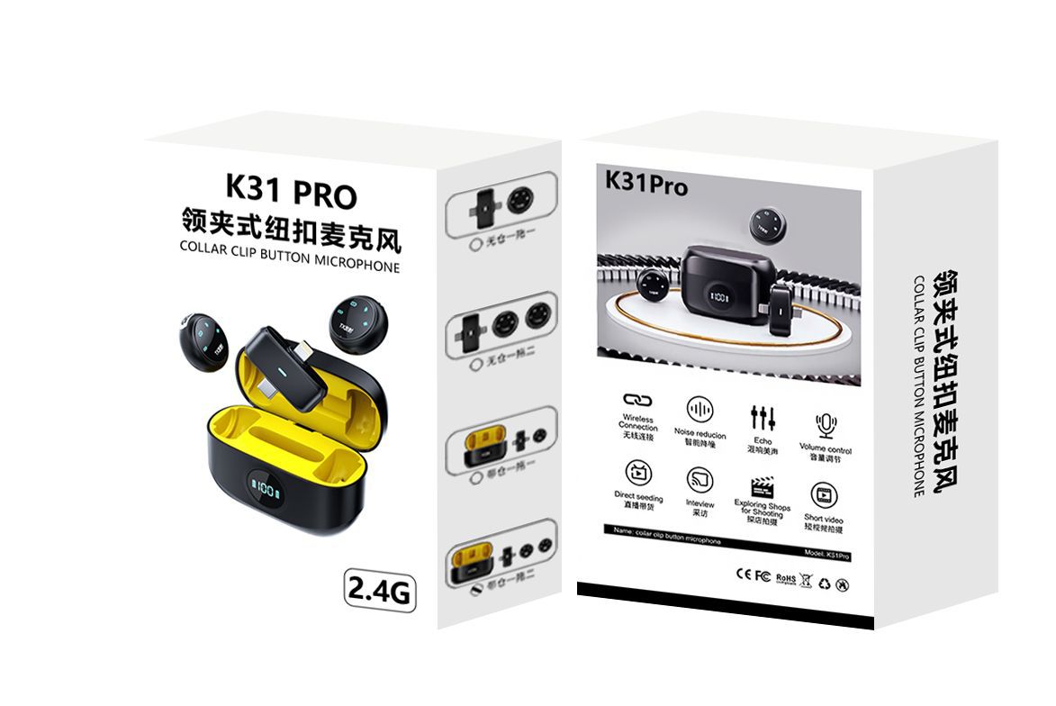 K31 PRO Collar Clip Button Microphone