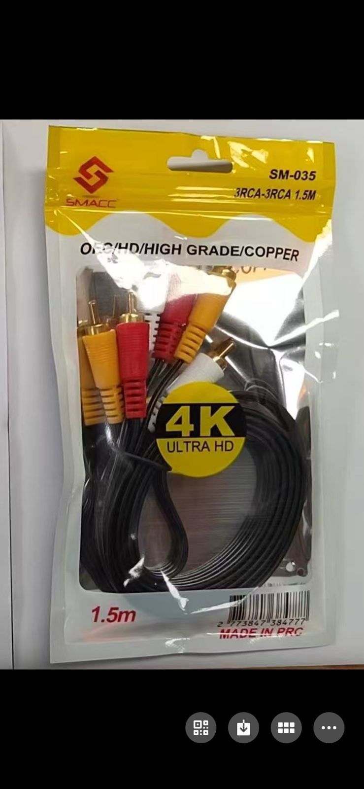 SMACC brand 3RCA to 3RCA audio/video cable.